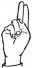 На ћирилици написано ВЛАДАН ДАБИЋ састоји се из 11 слова [?]. Исписано ћириличном једноручном азбуком за глувонеме: